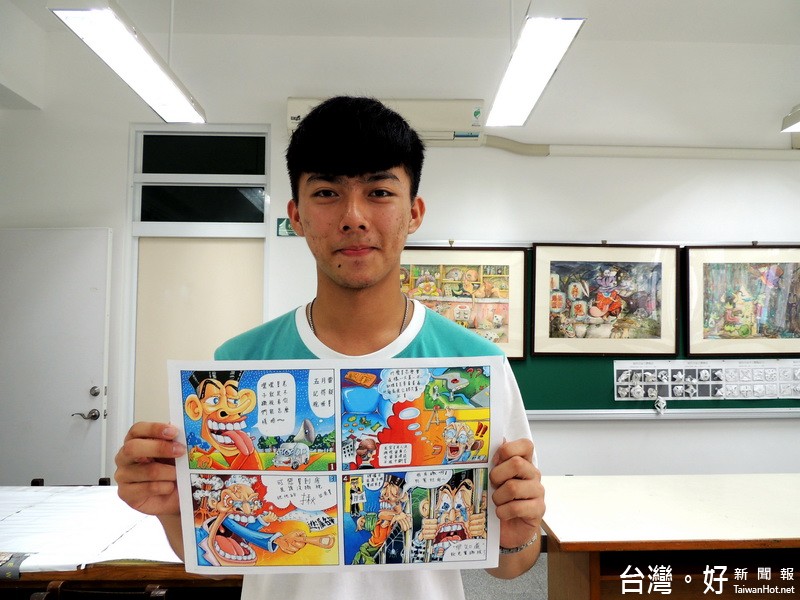 陳振榮同學說,之前畫畫得獎時接受過銀行的贊助,在杜老師的指導下參加「彩繪幸福」租稅宣導活動四格漫畫比賽獲得第2名有1萬2千元的獎金,這是意外獲得這麼高額的獎金,所以捐出一半金額給家扶中心,也希望這些需要幫助的人能一同分享我們得獎的喜悅。