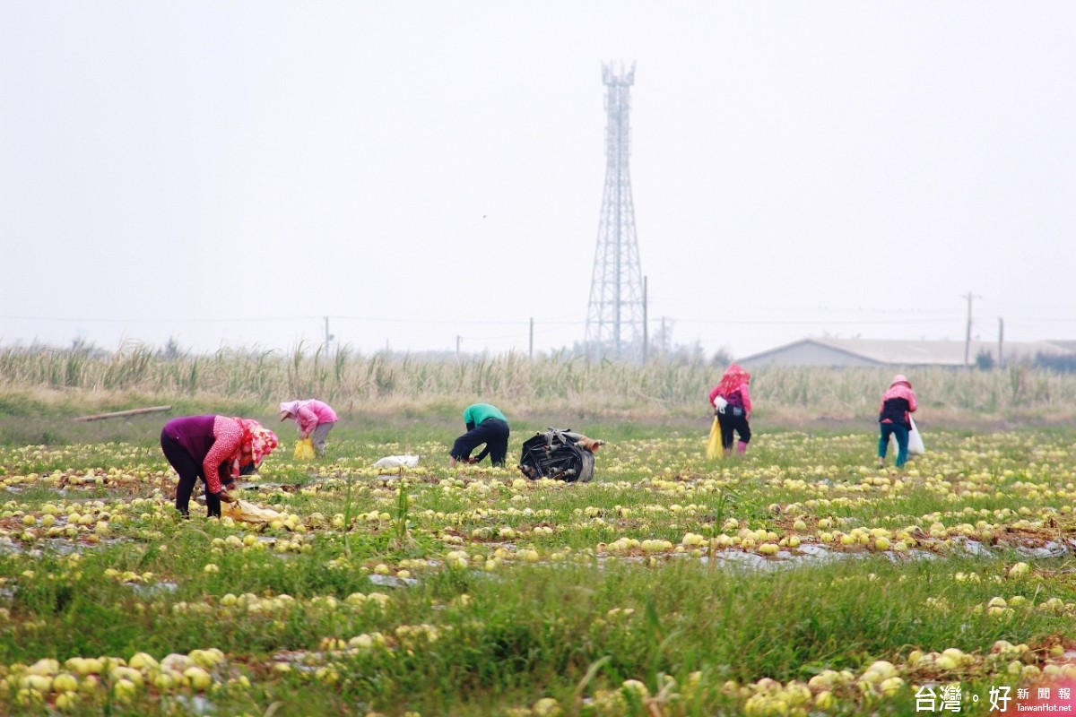 一公布消息,近百位鄉民前來搶收,謝姓老農的小發財車堆滿成袋的香瓜,也有成群農婦一起來搶收,表示這些要做成醃製罐頭,過年過節分送給好友。