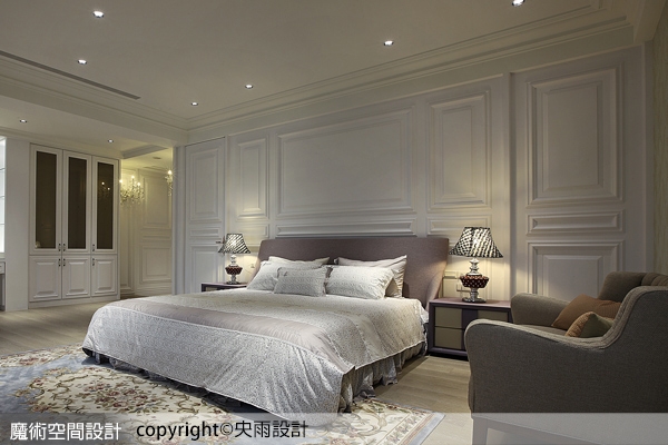 15.【圖說】主臥床頭立面以經典美式新古典風格呈現,淡雅色系營造舒眠風情。