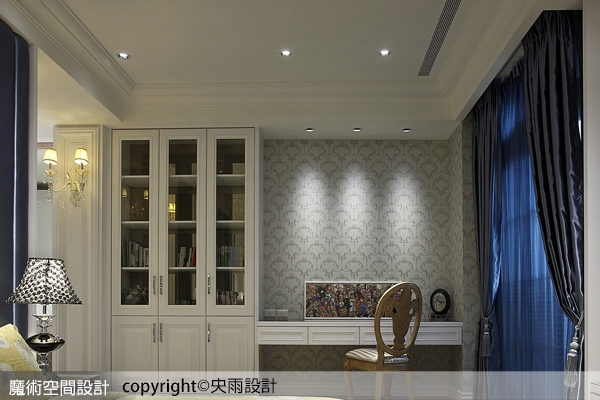 18.【圖說】對稱壁燈、壁紙、色彩與線板門片,一一講究的細節妝點出美式臥眠空間。