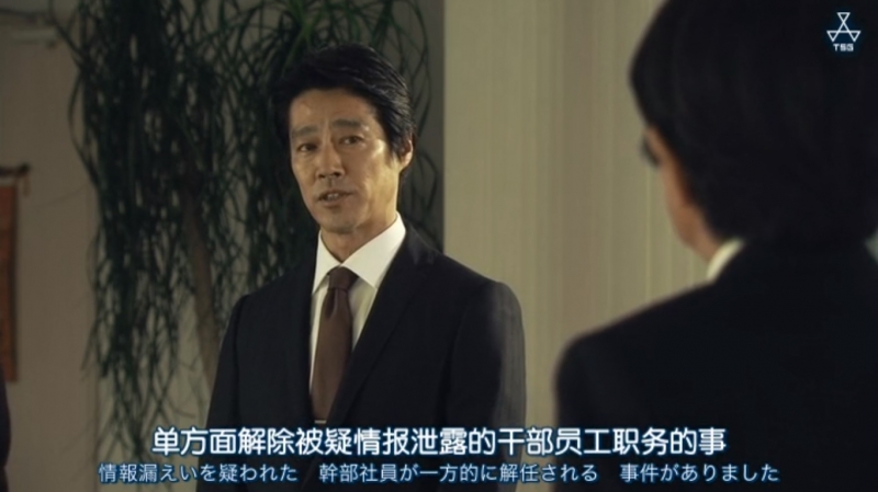 然後像前幾集中完全不願意配合西行寺的社長又來了,每次看到這些魯莽行事、自以為是管理階層就恣意妄為,不願意聽勸的社長都覺得這些人真的是卸任活該(好像說重了些)。這一集中,西行寺引用了真實事件算是有點「教訓」新陽製藥的社長,那一段真的是太快人心。除了這部份之外,在製藥界中對女性的歧視似乎也是值得被關注的重點,在亞洲世界的職場上似乎難免還是有這樣的事情發生,即使現在已經是2015年依舊如此,坦白說總覺得有些扼腕。