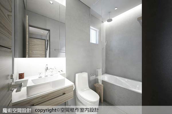 圖說:衛浴-灰色基底的現代簡練風格,運用間接照明妝點出立體具層次的空間感,提昇高雅的居家品味。〈3D示意圖〉