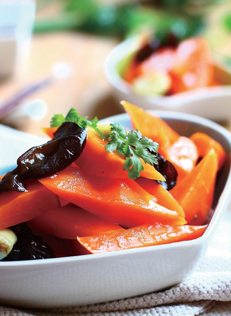 一般看到胡蘿蔔,大多是胡蘿蔔炒蛋。這道菜由胡蘿蔔、木耳和大蒜一起燒煮,不只口味豐富,更讓人臣服於胡蘿蔔的魅力之下。
