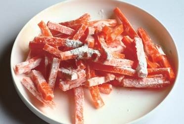 - 胡蘿蔔過水一是為了炸的時候更容易炸透,二是容易沾上玉米粉。