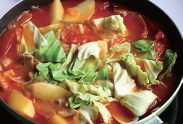 - 燉到馬鈴薯快熟的時候,再放入切好的高麗菜塊。繼續燉至湯汁稍微有點黏稠,放入胡椒粉調味就可以了。
