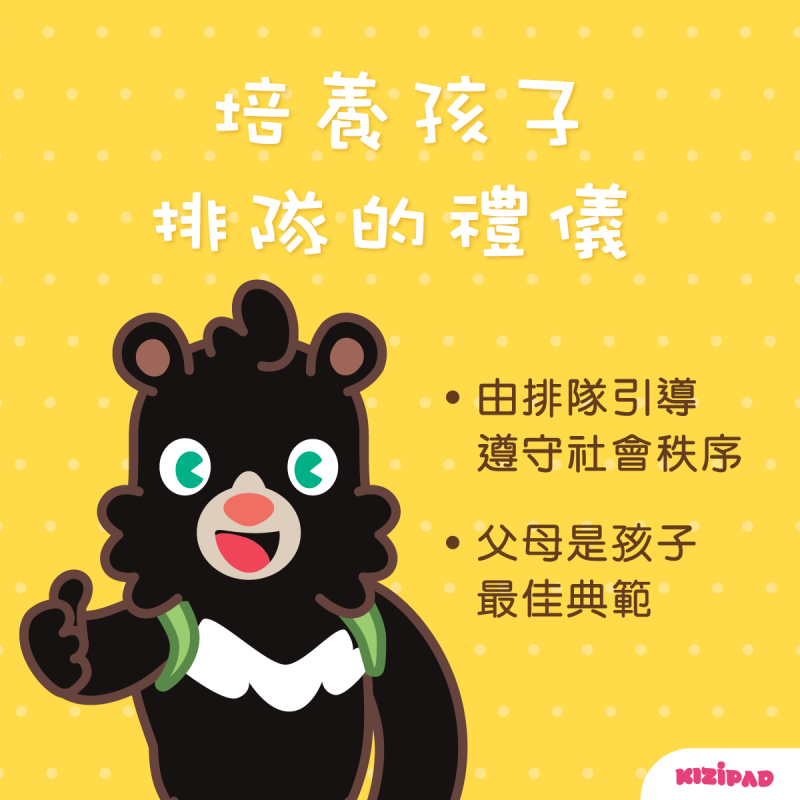 許多公共場合都需要排隊守秩序,應該讓孩子理解排隊的重要,以及禮讓別人的社交禮儀;重要的是教導孩子要守社會秩序。