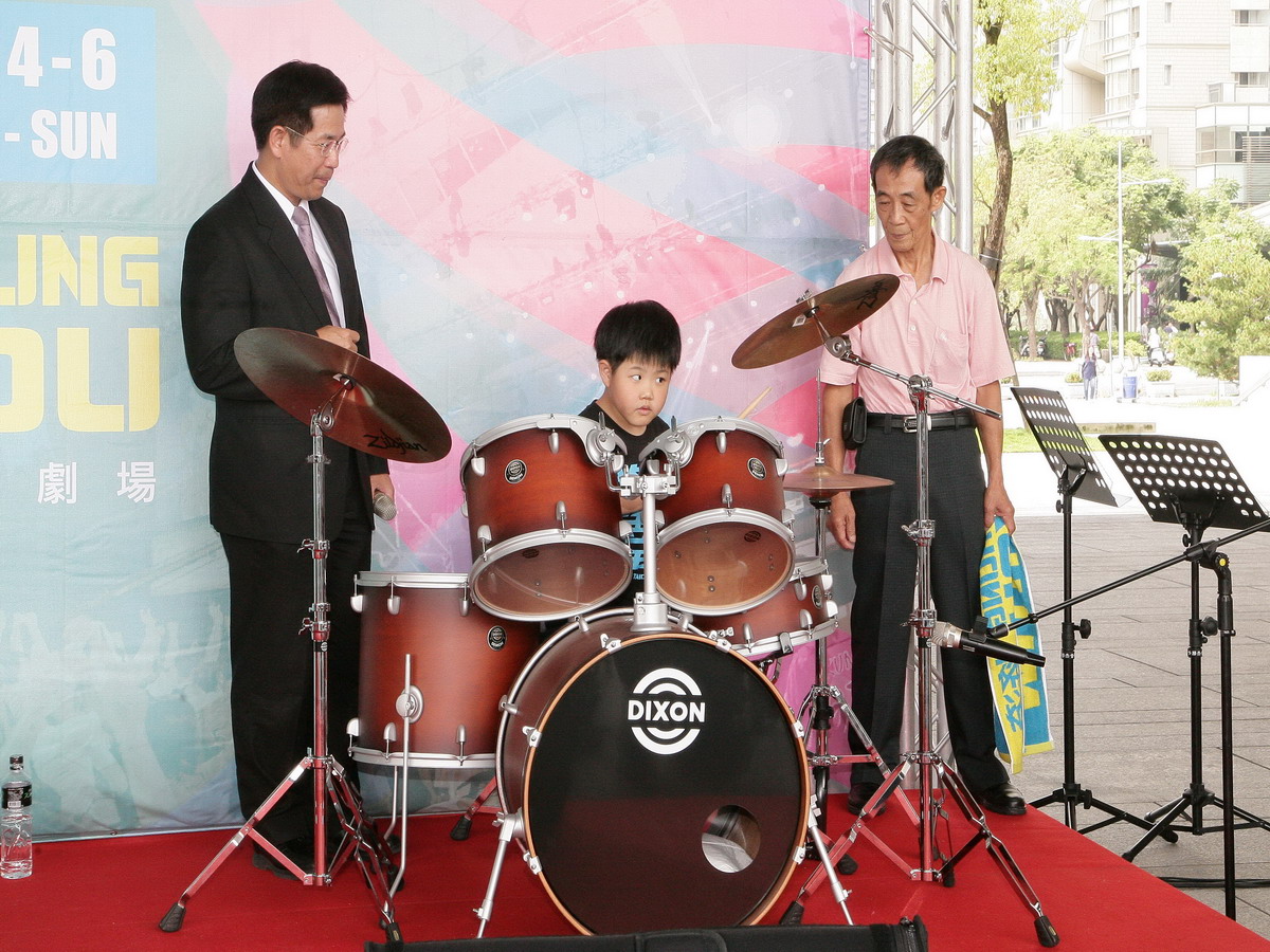 台中市政府文化局2日舉行「搖滾臺中」宣傳記者會,邀請台中市傑出演藝團隊「聲五洲掌中劇團」,與在地獨立創作樂團「主音樂團」跨界合作,以精彩的演出為活動揭開序幕。近期最撼動人心演出的盲人小鼓手呂岳駿也用爵士鼓演奏「寶島曼波」,他在國內最強搖滾樂團四分衛鼓手緯緯指導以及爺爺的鼓勵下,33天就學會用爵士鼓表演,希望呈現「努力和堅持」就是搖滾的精神。獲得現場民眾熱烈掌聲。