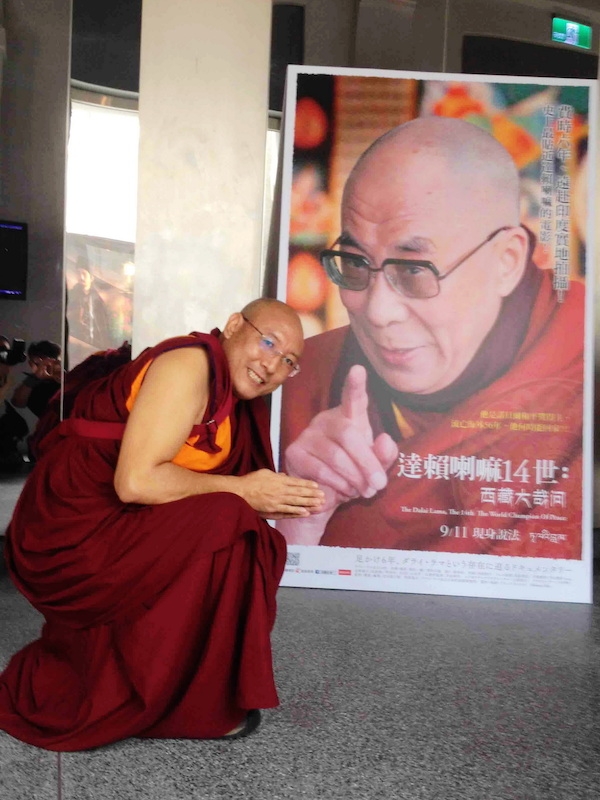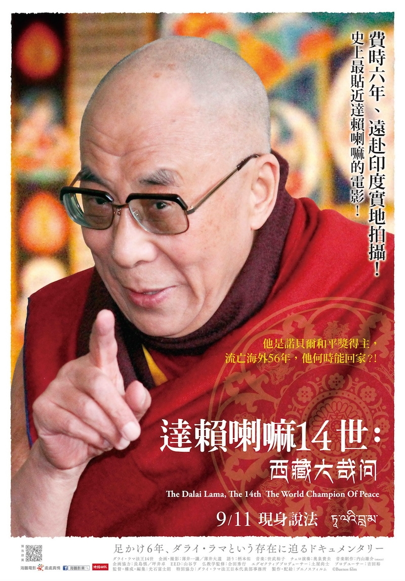 由日本導演光石富士朗遠赴印度拍攝的記錄電影《達賴喇嘛14世:西藏大哉問》(The Dalai Lama, The 14th:The World Champion Of Peace)日前(9/2)舉行試片,受封「格西」(藏傳佛教佛學博士)的見悲青增、札西彭措等四位喇嘛也前來朝聖。由於當天適逢西藏民主日,達賴喇嘛基金會董事長達瓦才仁及夫人也特別穿著西藏傳統服飾出席這場試片會,現場氣氛十分熱鬧有趣。見悲青增在看到《達賴喇嘛14世》海報時十分興奮,立刻蹲下擺出尊聽達賴教誨的模樣來拍照,十分頑皮可愛。《達賴喇嘛14世》將於下週五(9月11日)正式上映。