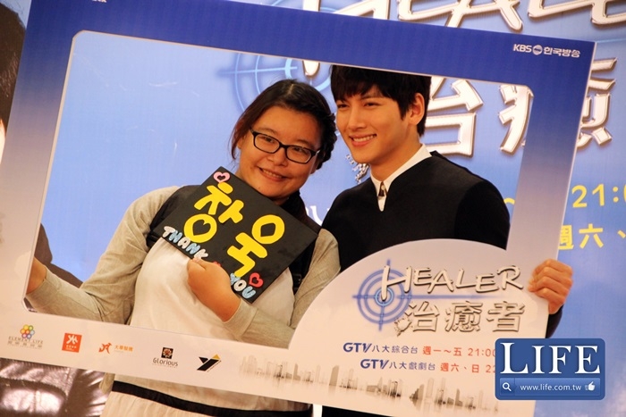記者會現場,也安排幸運的粉絲們上台與池昌旭互動。這些上台合照的粉絲們,讓台下的池太太驚呼連連。