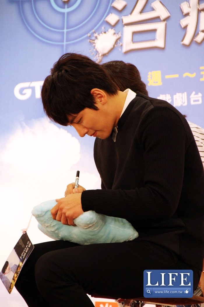 正在為星星抱枕簽名的池昌旭。只有唯一一個,這可愛的星星抱枕,將有粉絲可以幸運拿到喔!)