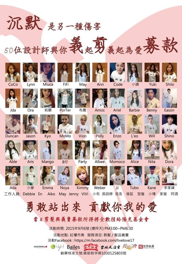 西門町愛心大串聯~當天會有50位髮藝設計師為大家做造型,剪髮自由捐款與義賣所得將全數捐予陽光基金會,歡迎到場共襄盛舉!也記得分享讓更多人知道!
