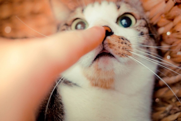 1.一隻手固定住貓咪的頭,用棉花沾溫水輕輕擦拭鼻子附近及鼻孔外圍