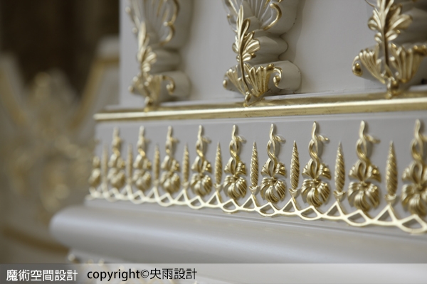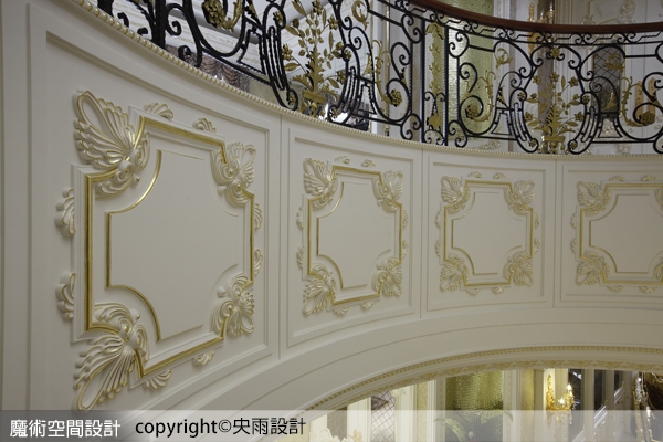 【圖說】央雨設計在每一個轉折都表現出優雅的弧線造型,鍛鐵與金色浮雕裝飾,增添歐洲宮廷雍容大度。