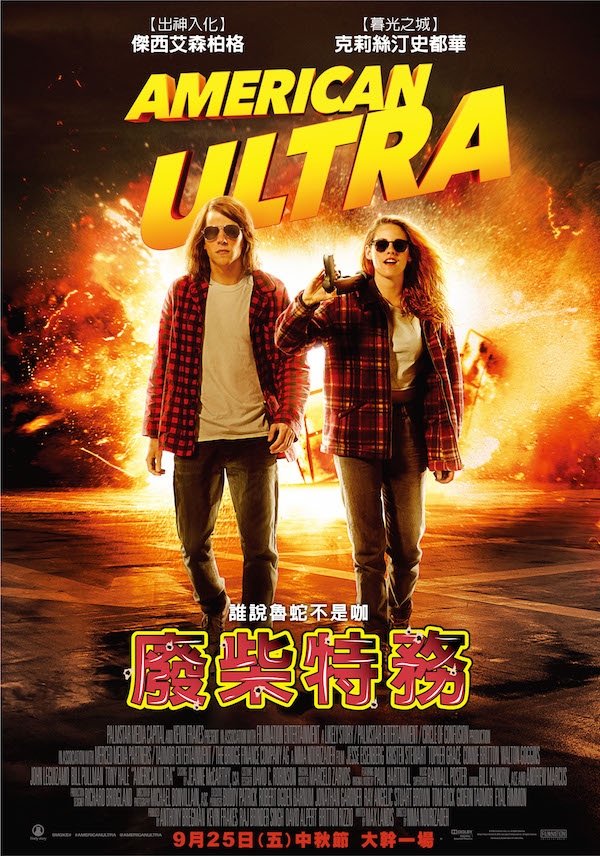 動作喜劇《廢柴特務American Ultra》裡克莉絲汀史都華(Kristen Stewart)與傑西艾森柏格(Jesse Eisenberg),飾演一對平凡的小鎮情侶,男主角傑西艾森柏格被催眠而遺忘自己曾經是CIA超級特務的身份,因CIA欲銷毀計劃前來追殺他們,反而喚醒男主角深層記憶以及所有的特務技能,引起猛烈的反撲,雙方展開一場驚天動地的對決。一場大賣場中的打鬥戲,傑西艾森柏格一個人對抗超過十名訓練精良的特務,沒有武器的他,完全只能運用手邊拿到的工具,出手又快又狠,帥氣指數爆表一掃之前的魯蛇形象。為了飾演身手非凡的特務,傑西艾森柏格接受了密集的武術訓練,他說:「通常我的角色都是那種躲在房間裡碎碎念的宅男,終於有部分可以讓我試著當動作明星,非常有趣。」勤奮好學的傑西艾森柏格,甚至把握時間跟武術指導學習幾招,以備未來演戲或不時之需。