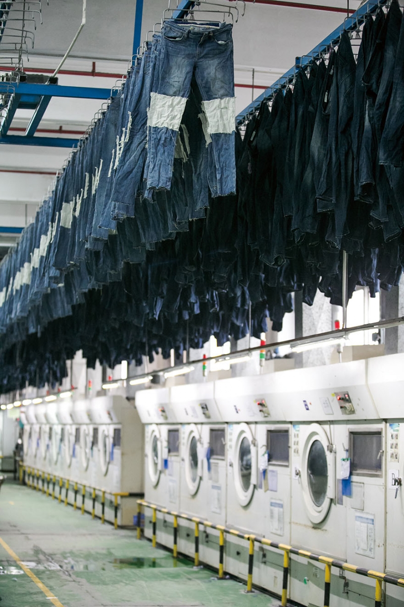 然而,選擇牛仔褲作為環保系列的品項,不免也招來質疑聲浪,因為要製造一條牛仔褲,必須耗費大量能源,而過程中所使用的化學物質與噴砂,更有危害工人健康的隱憂,為了解除我們的疑慮,這次BRAND特別前進H&M位在廣州的牛仔褲合作生產工廠,試圖尋找答案(註2)。