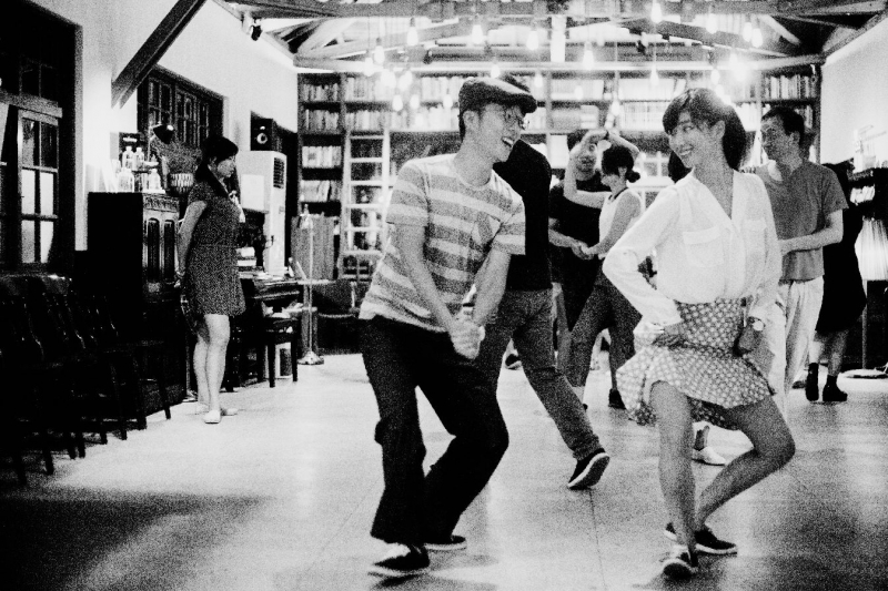 週五晚上台北松菸水池旁的閱樂書店,溫暖的黃色燈光在夜裡從小屋子透亮著,令人放鬆的爵士樂迴盪在耳邊,順著樂音推了門走了進去,一群年輕男女穿著復古的衣裳,兩兩成對,隨著輕快的爵士老歌跳著搖擺舞,每個青春的臉龐都漾著燦爛的笑容,頓時以為闖進了時光隧道,重回美好的爵士年代!