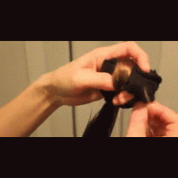請準備一雙男生穿的薄襪,剪掉襪子前面的部分,向外側翻一層層地捲成筒形♡
