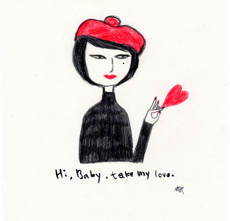 爽朗、積極正面印象的莎蓮娜,其實在繪畫方面的才華也很讓人敬佩,原本是想打發時間,找回對畫畫的興趣,最近的創作都是以紅、黑、白3色為主,主題為愛的系列。