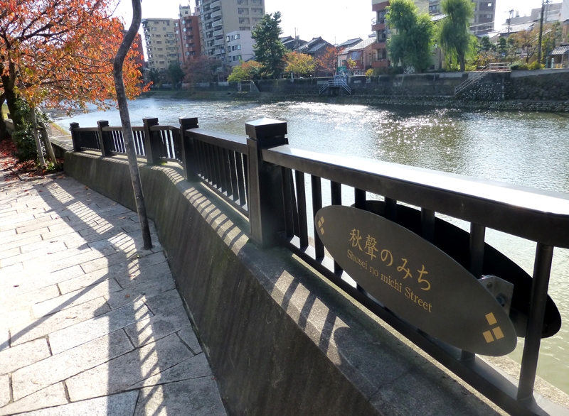 倘若從梅之橋跨越淺野川往右轉,可以看見一條鏡花之道,豎立著「瀧之白糸」碑和雕像,台灣遊客可能不太熟悉,這是日本明治後期到昭和初期的小說家泉鏡花(いずみきょうか)原作《義血俠血》改編舞台劇中的女演員,以水表演雜技著稱。