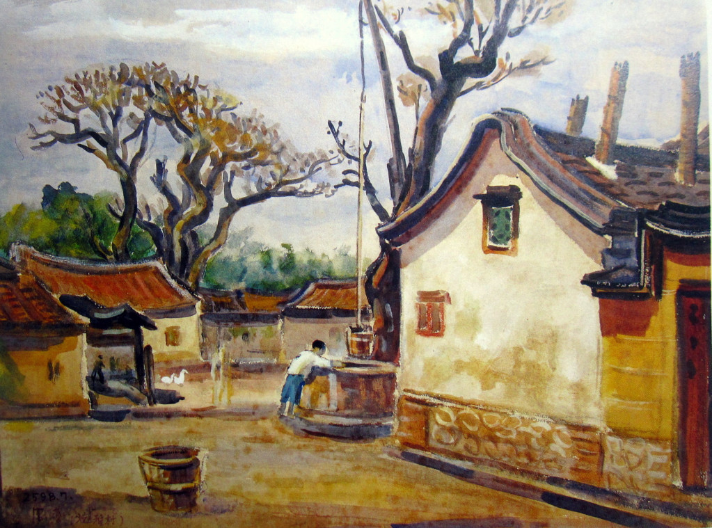 《吊桶 /湳雅村農家風光》1937 年紙‧水彩51 x 68.2 公分[/nop]