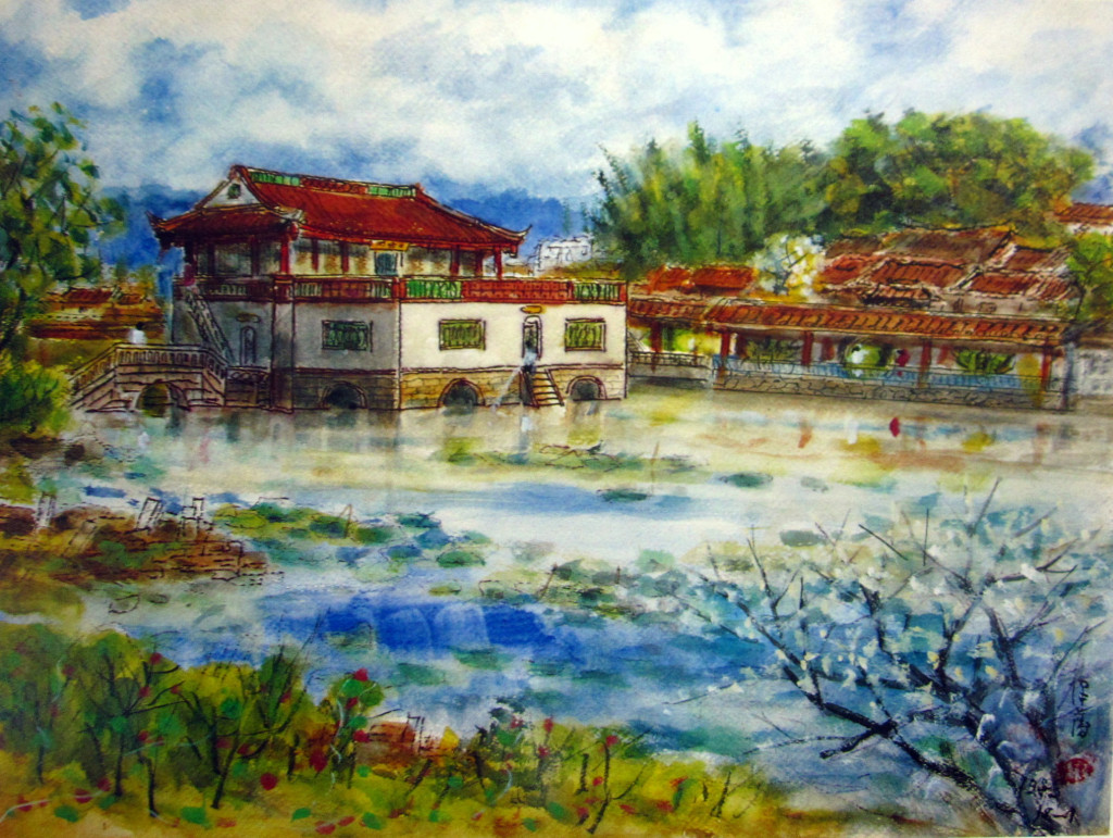 《潛園懷古》1976 年紙‧水彩55 x 78 公分[/nop]