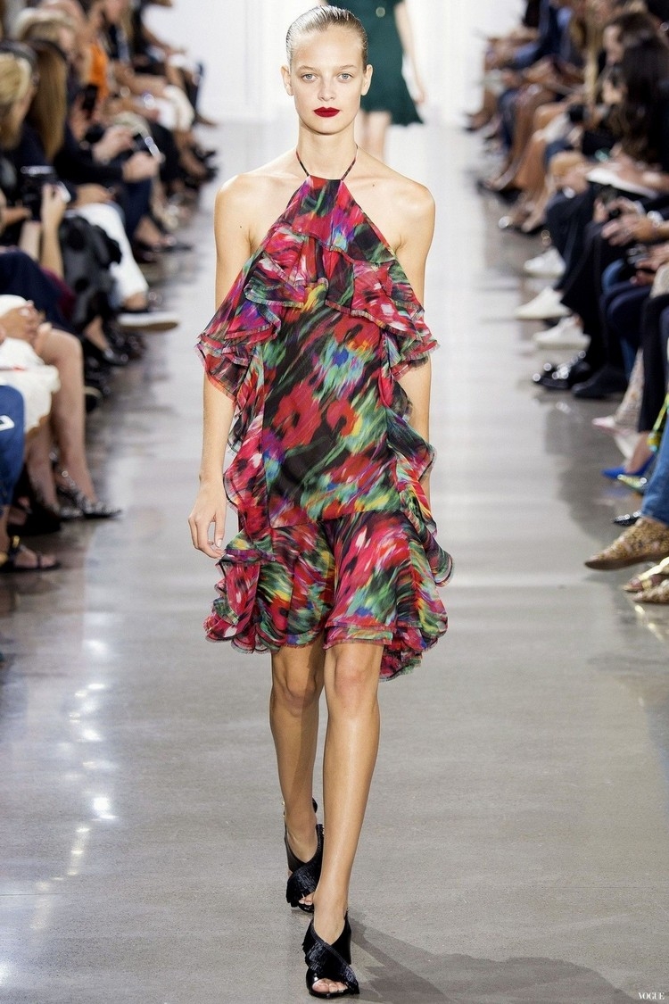 2016年春夏裙裝中雖有荷葉邊,但是收邊卻不規則,顏色更是選擇不常見的藍綠色與鐵鏽色。