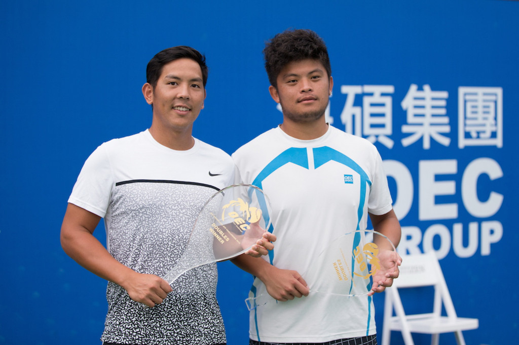 「2015高雄海碩國際男子網球挑戰賽」衛冕的「海峽組合」彭賢尹/公茂鑫今(27)日挑戰二連霸失利,遭「純本土」的「胖鵬配」楊宗樺/謝政鵬以兩個6-2擊退,「胖鵬配」搶下今年兩人合作的第三座冠軍,更獲得海碩集團韓國福總裁先前承諾的雙倍獎金:「純本土組合奪冠,獎金加倍!」,兩人共可帶走15,500美元獎金,約51萬台幣。