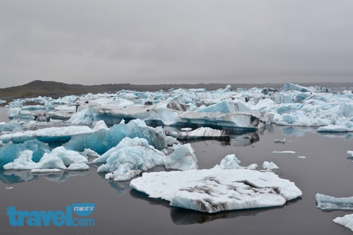Jokulsarlon冰河潟湖,湖中冰塊、冰山漂浮,景觀獨特。