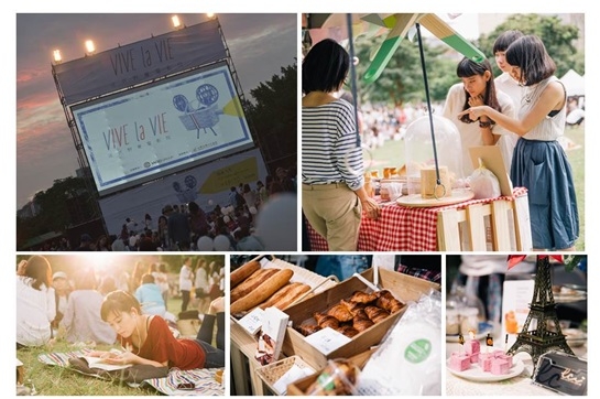 2014年的秋天,華山大草原出現了台北第一場法式野餐電影院,「Vive la Vie法式野餐電影院」為實踐法國人的優雅生活為精神首屆出發,在台北營造一個法式悠閒的野餐空間,號召民眾穿上紅藍白配色的服裝,即使沒有機會飛往法國,也可以主動讓優雅的生活態度,成為你的巴黎,野餐現場意外吸引超過萬人的熱烈迴響!