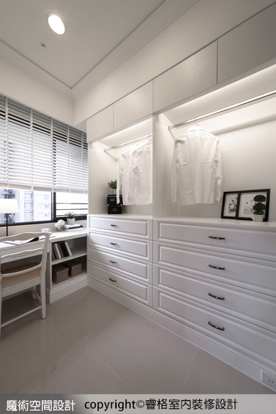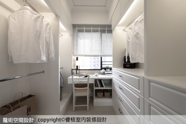 12. 【圖說】隱藏照明的開放式衣櫃,方便衣物飾品收納,保留對外窗的位置設計為多功能梳化閱讀區。