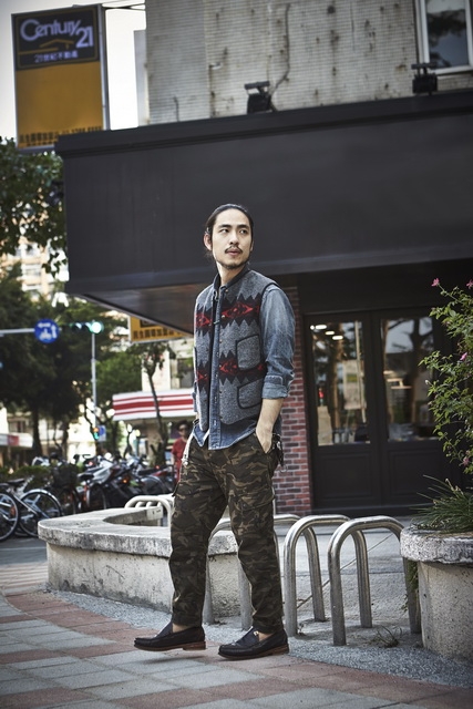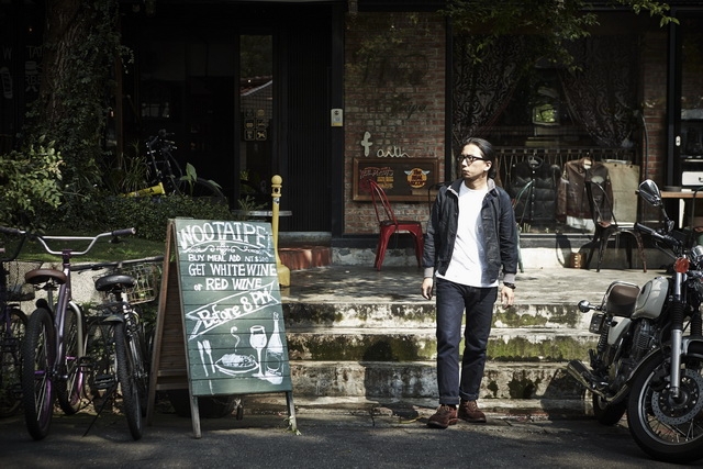 對老品有一定堅持的Kurt,身上的1940'S style Deck jacket就是他自己的心血,色落、摩擦、皺摺等,都流露出品味的講究。
