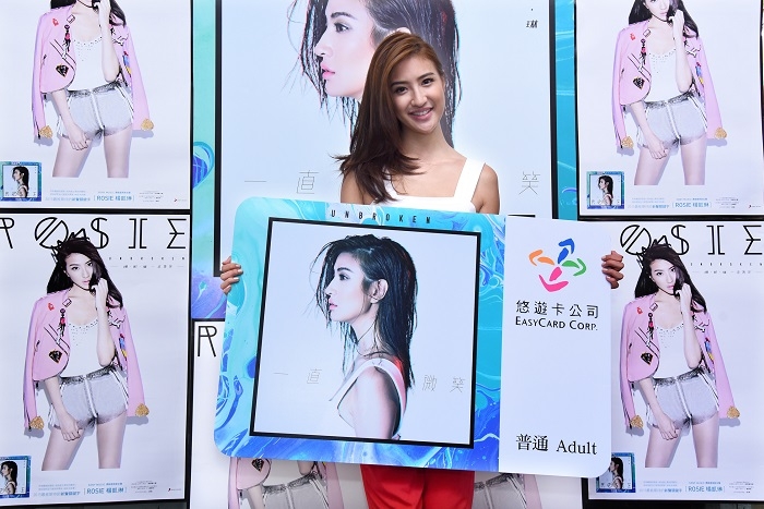 此外,在專輯中為楊凱琳跨刀寫歌的師姐艾怡良特別前來站台,只見身材姣好的楊凱琳與健美的艾怡良今天不約而同都穿了”中空露腰”剪裁的造型出現,化身為”小腰精”的SONY雙姝一齊站出來十分吸睛,當場成為媒體鎂光燈的焦點!而兩姐妹分別露出腹肌及馬甲線亮相,不但不見較勁火藥味,還彼此惺惺相惜,尤其楊凱琳看到艾怡良”冰塊腹肌”亮相,佩服地五體投地,直說,「我想要練的跟師姐一樣!而且還要跟她約去打拳擊!」愛運動的艾怡良得知師妹很喜歡打拳擊,特別準備了一套拳擊手套,手套送給同樣愛運動的楊凱琳,希望她初試啼聲能”打”遍天下無敵手!艾怡良特別稱讚楊凱琳說,「Rosie唱歌很好聽!而且我真的覺得她唱我寫的”怎麼還不愛”這首歌,唱得比我的demo 還好聽!」