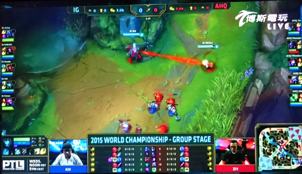 2015年英雄聯盟世界大賽,台灣的ahq在10月4日出戰中國的IG。圖片:作者翻攝轉播畫面。