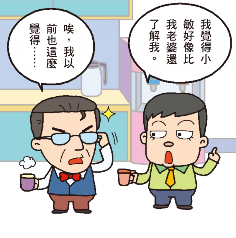 很多男人寧可跟同事分享問題,也不願意告訴另一半,這就給了小三趁虛而入的空間,但其實認真想想,小三並沒有真的比較懂你,只是懂得在適當的時刻,給你一些無意義的吹捧罷了!