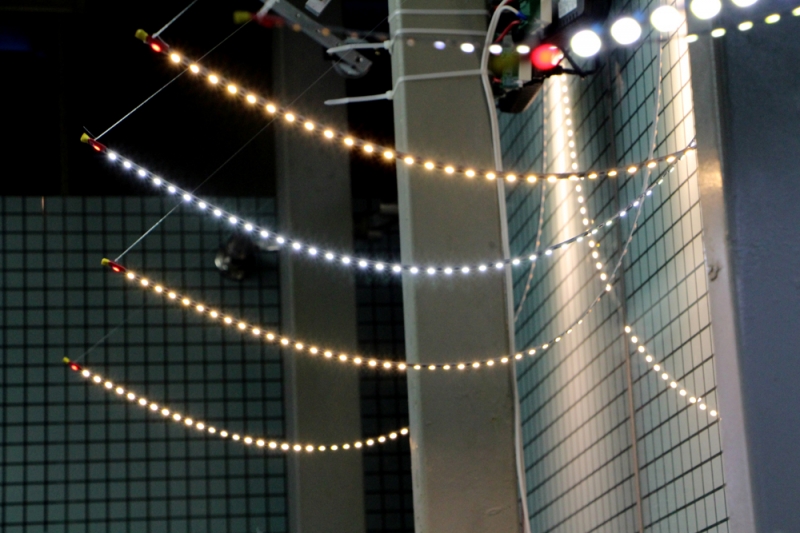 他更進一步說明,他將鋁燈條模擬成毛毛蟲,是配合建成國中停車場附近的草地,不只勾起逗趣的氛圍,也讓大家了解藝術其實很好親近。莊志維過去的作品大多在美術館展出,以銀、黑、白等冰冷色調為主,《光蟲》則利用現成的材料創作,會散發溫暖的黃色燈光。