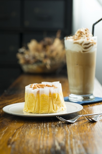 半熟蜂蜜蛋糕「皺皺」是咖啡好伴侶,就著陽光看街景更是愜意。