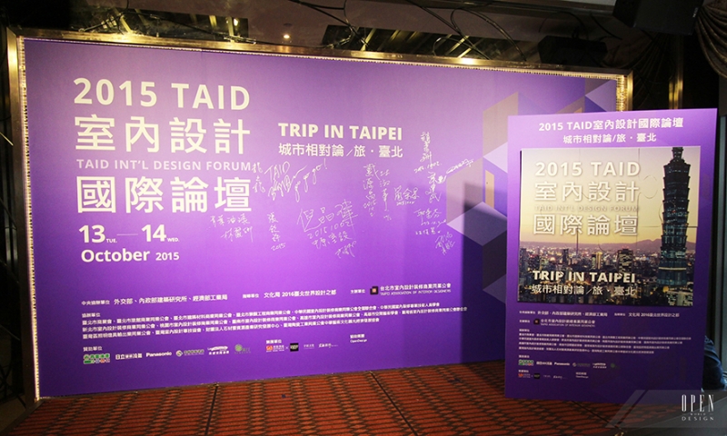 10月2日,OPEN參與由TAID所舉辦的「TAID室內設計國際論壇記者會」,為配合2016世界設計之都,由臺北市室內設計裝修商業同業公會理事長 孫因宣布,10月中將邀請兩岸三地與世界知名設計大師,包括東京晴空塔燈光設計師戶恒浩人、2015中國室內設計年度人物楊邦勝、臺灣本土設計大師邱德光......等大師來臺舉辦國際論壇主題,從旅者角度講述飯店燈光、空間、設計、趨勢之成功經驗。