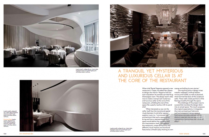 「DN innovacion」是一間西班牙創意料理餐廳,設計師藉由超現實的設計概念,兼具設計感與國際觀的定位,餐廳有如電影般的場域感受,透過層次建構,由內而外、由緊密到開展,有秩序的分配出各種機能屬性,環狀層次交疊出雕塑性的空間氛圍。