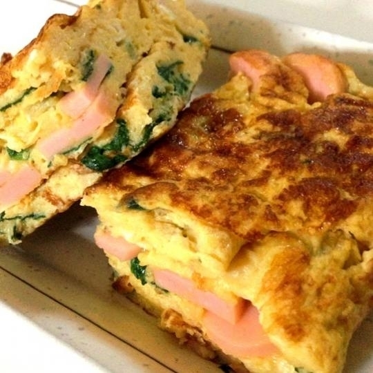 充滿時尚感的蛋餅風煎雞蛋卷,不但能簡單地用完冰箱裡剩下的材料,還能令便當的女子力up☆
