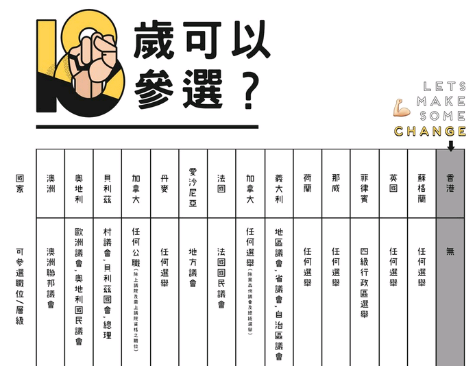 (年滿18歲即擁有參政權的國家或地區列表。圖表取自:Stand News/學民思潮圖片)