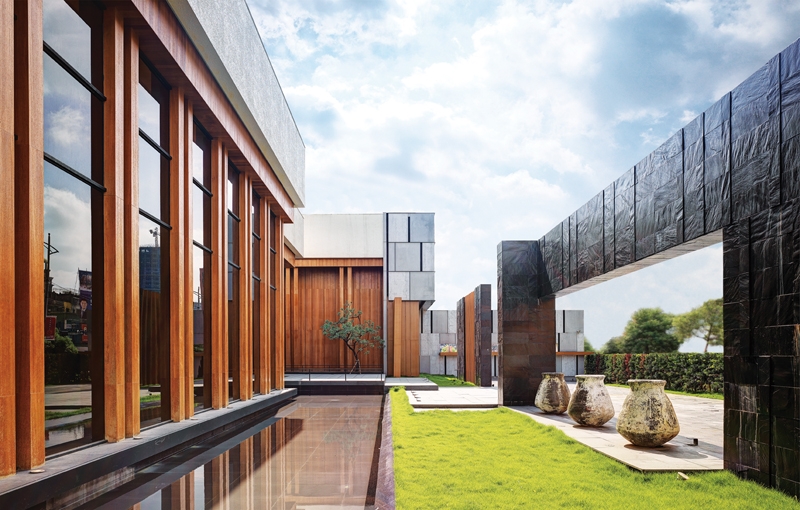 四方縈繞的池水、風雅的古舊陶甕,點映於實木與天然石共構的建築主體,摒除繁複墜飾,讓材料順應空間展露出最原始的質地,俐落的動線一路從外牽引至內,行走其中,心情即刻放鬆下來。