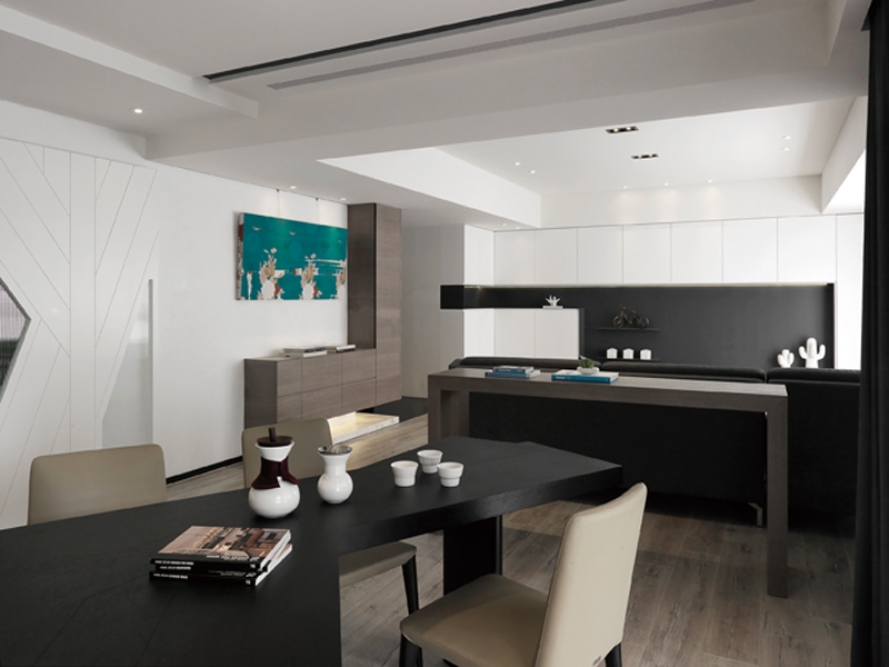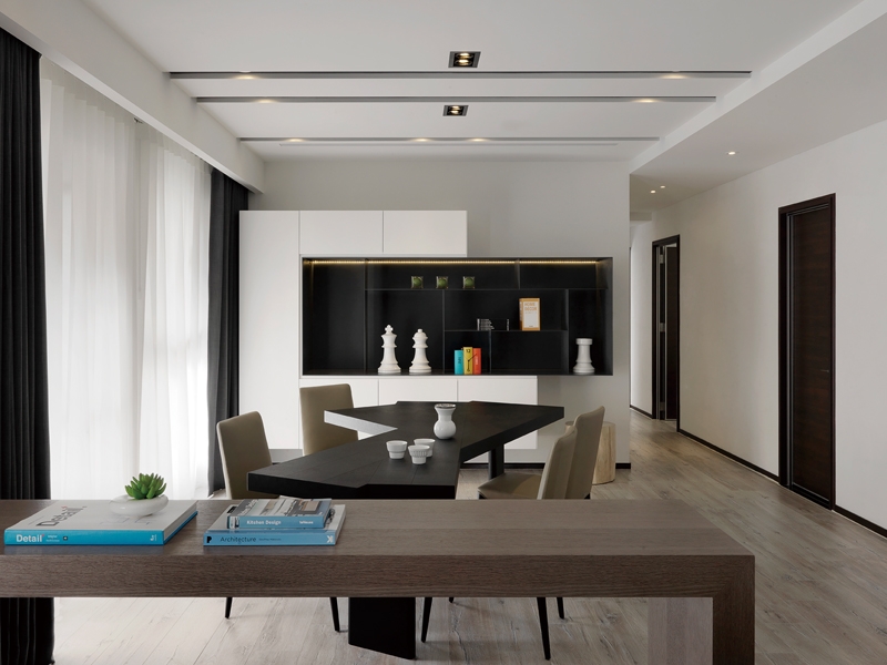 璞暘設計總監毛鐿崴此次為業主改造一間高品質住宅空間,利用飯店的展示方式呈現,並且以黑白主色調烘托出空間的純淨與對比;為了軟化色調帶來的強烈感,設計師襯以許多木製家具讓住屋的每一角落充滿翩然舒適的氣息。