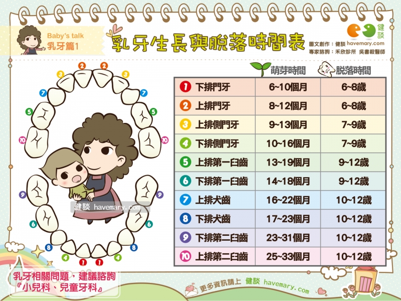 寶寶乳牙生長順序與脫落時間表: