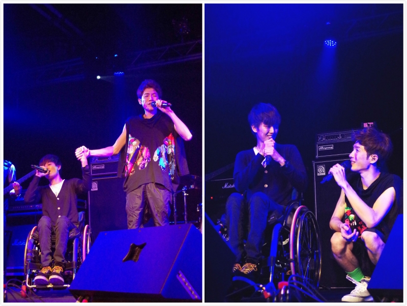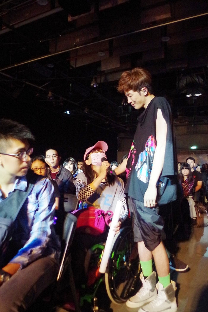 另一位大學就讀護理系的男歌迷激動地說,他其實很不讀護理系,雖然考上了護理系,但完全不想念,但他大學一年級時,他哥哥出了車禍,雙腳癱瘓,醫生說很難再站起來,但他希望哥哥可以再站起來,所以他一路照顧哥哥,一邊也努力念書,但他說,護理系真的很難念,一堆專業的醫學術語都背不好,相當受挫一度想休學,但他看著哥哥不放棄站起來的念頭,才又有決心要把護理系念完,他哭著說,「我好想好想看到哥哥站起來的一天」,蕭閎仁聽完,也哭著擁抱他,他說,為了哥哥他要繼續努力下去。