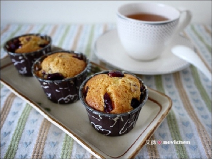 在馬芬中加上了蔓越莓乾,酸酸甜甜的滋味讓人一口接一口停不下來,
