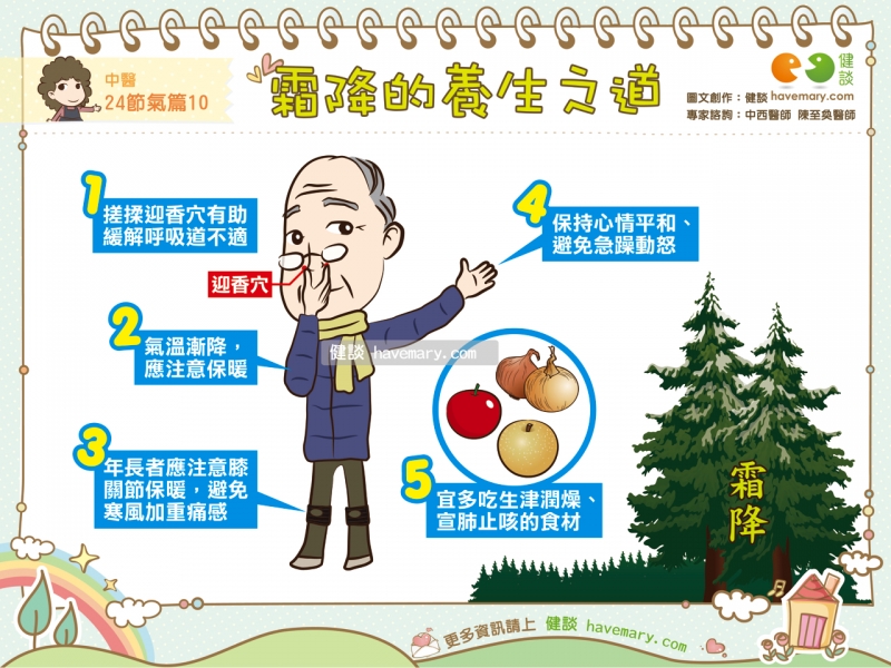 2. 霜降後,氣溫漸降,應注意保暖,以免身體受寒造成不適。