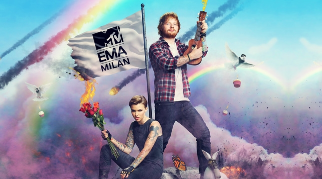 「MTV歐洲音樂大獎」星光熠熠,主持人邀請紅髮艾德(Ed Sheeran)與盧比蘿絲(Ruby Rose),艾德開心表示:「我好希望點禮當天快來到,