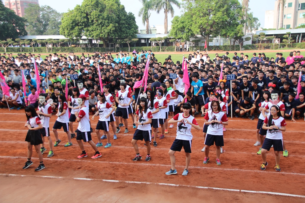 嘉義高級中學29日熱鬧舉辦104學年度全校運動大會,不少班級學子發揮創意,以各式各樣造型裝扮進場,活潑吸睛。嘉義市長涂醒哲受邀回母校,與學弟學妹們共度歡樂開幕式。