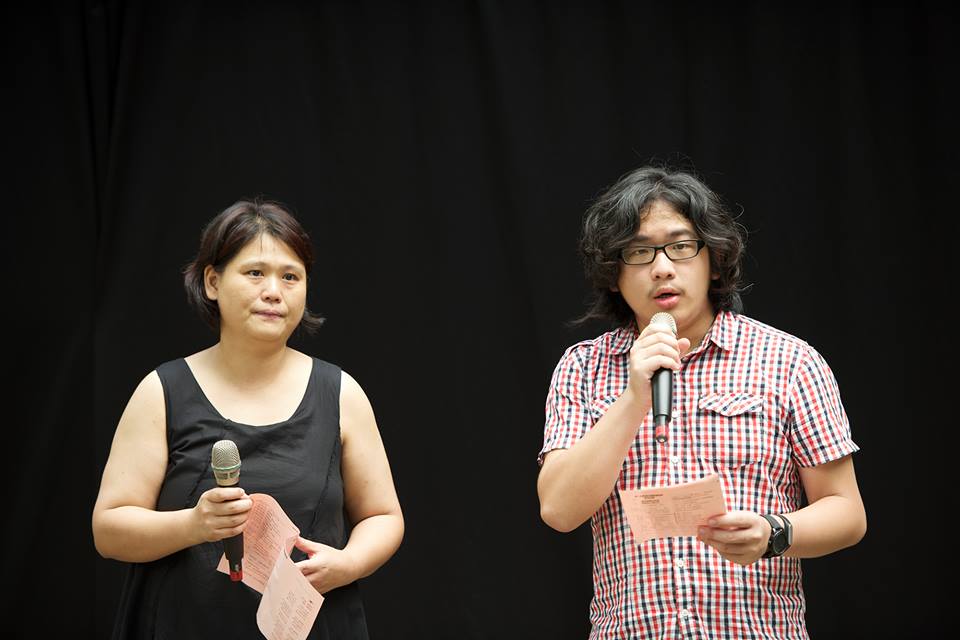 馮喬蘭(左),反課綱學生陳建動宣讀教育宣言