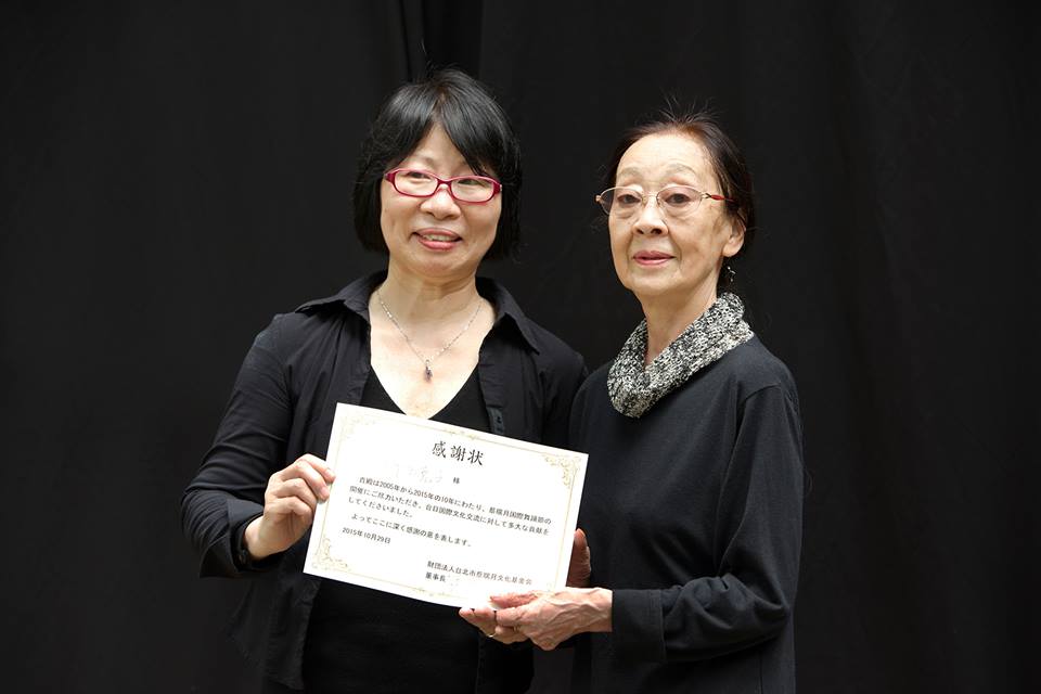 蕭渥廷董事長頒發感謝狀給日本現代舞大師折田克子,感謝她10年來的支持